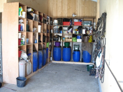 Her er gode opbevaringsmuligheder til rideudstyr mv. Desuden er der en hyggelig opvarmet rytterstue med tekøkken, omkædning og toiletfaciliteter.